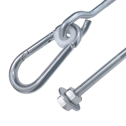 - Per appendere altalene, scale e altri accessori, è necessario un connettore di montaggio robusto e affidabile. L'imbracatura di tipo A con moschettone viene utilizzata per l'installazione di quasi tutte le altalene, le scale, le funi e altri accessori.