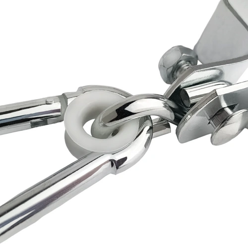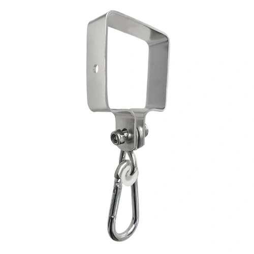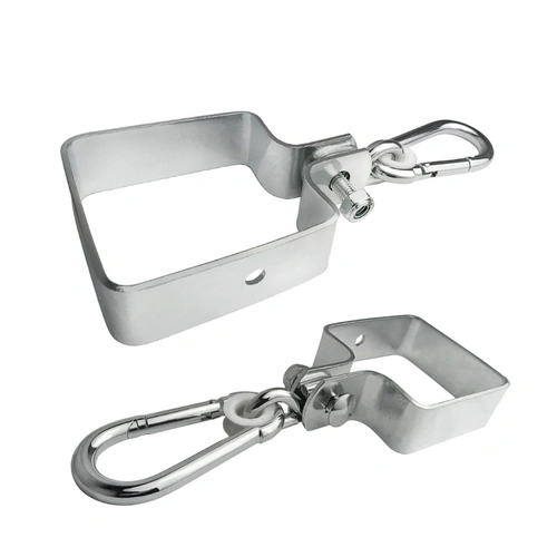 • Staffa metallica per trave 90 x 90 mm con moschettone. M applicato.in. per il fissaggio di altalene e altri dispositivi alla struttura.