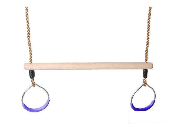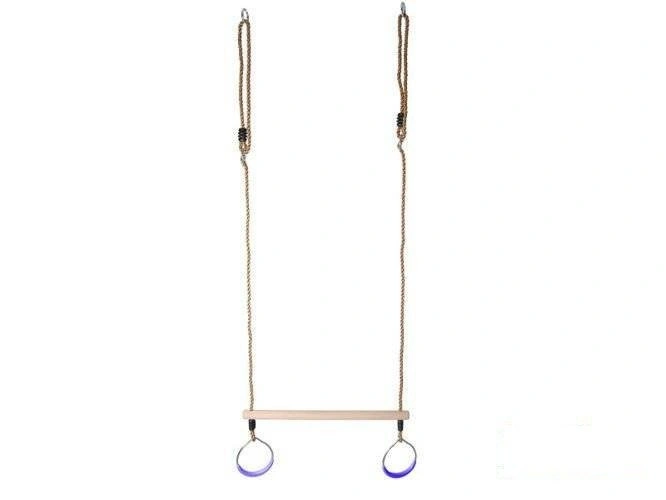 • Trapezio di legno con cerchi rotondi su funi. Un ottimo modo per divertirsi in sicurezza e fare attività fisica.